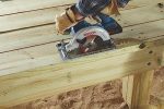 Ergonomic circ saw main handle angled for ease in pushing the saw forward. 6-1/2 In. circular saw blade capacity cuts through 2 In. at 90 degrees and cuts through 2x (“two by”) material across entire bevel range.